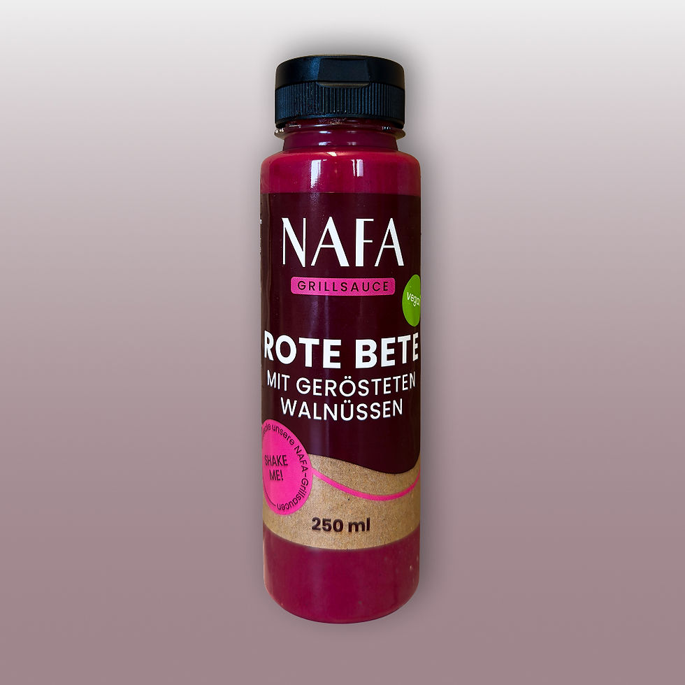 Wasser, Rapsöl, WALNUSSKERNE 7,0 %, Rote Bete 5,5 %, Weinessig, Zucker, WALNUSSÖL 3,1 %, Speisesalz, SESAMÖL, modifizierte Stärke, Verdickungsmittel: Xanthan, Guarkernmehl; SENFSAAT, Zitronensaftkonzentrat, Gewürze, färbendes Lebensmittel Paprikaextrakt, Sonnenblumenöl.